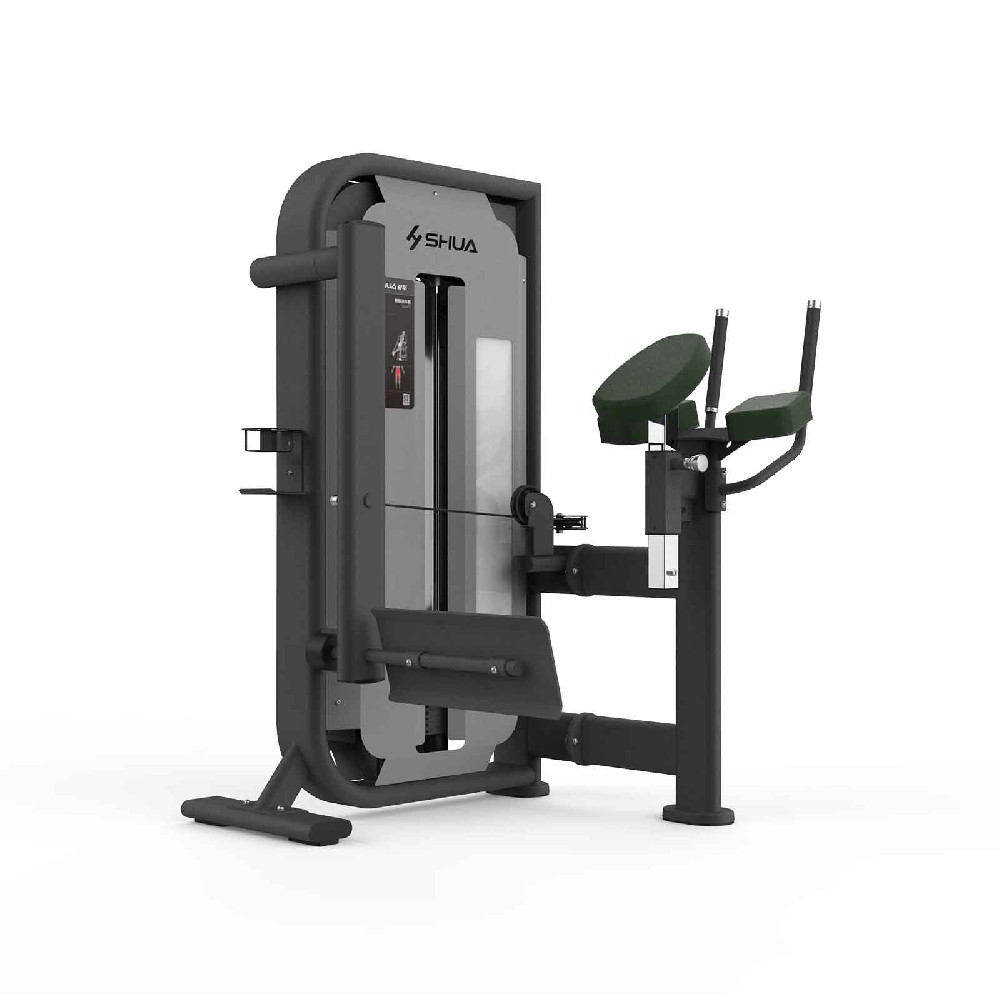 主要功能 锻炼臀大肌1、阻力形式:配重块;总重60kg;最小调节重量5kg2、垫类(坐/背/胸/肘垫):PU发泡成型3、最大人体承重:150kg4、主要管材规格:龙门架平椭150502.0mm,副架平椭120502.0mm5、牵索形式:日本进口钢丝绳;¢5.6mm6、轴承:人本轴承;62057、滑轮:尼龙加纤;¢117mm;尼龙加纤;¢95mm8、皮革类
